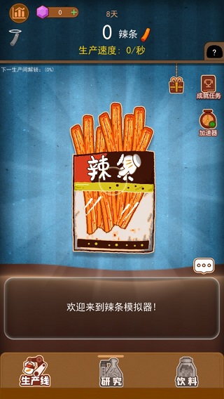 随着辣条数量的持续增加,玩家可以获得新的生产工具,同样依靠升级的方法,能够加速辣条的生产数量,减轻玩家手指点击的频繁操作。期间你还可以通过研究,加速道具的开发与使用。