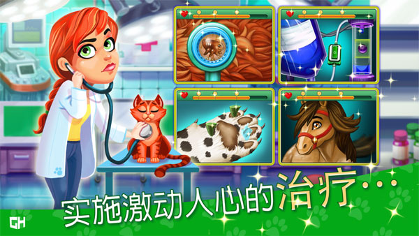 2、成为真正的兽医,在 6 个轻松的章节中照顾宠物和其他动物。