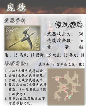 攻略:这个关卡获得武器也是非常简单的,只需要在过关的时候顺便干掉夏侯敦和他的副将,再干掉夏侯恩就可以了,没什么难度。