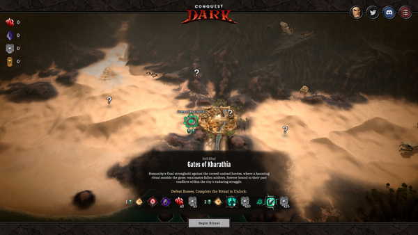 新手攻略方面,在本站下载解压后双击Conquest Dark.exe启动游戏,选择关卡进入,创建角色并选择初始天赋。进入游戏后操纵角色攻击敌人,每次升级可以选择新的技能,当生命值归零则游戏结束。