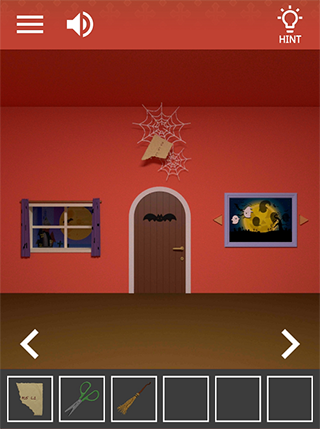5、拿走柜子右边的扫帚,后退右转,点顶部蜘蛛网,用扫帚获得半张纸,道具栏里两张纸合起来为一张获得提示纸。