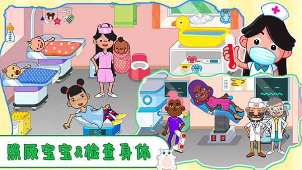 托卡迷你城堡护士游戏是一款非常有趣的手机模拟医院小游戏,玩家扮演护士,照顾产妇、接待探访者、处理病人病情,还能解锁新设备和工具,提升治疗效果。游戏中有各种科室,比如骨科需要包扎和使用拐杖,妇产科则要哄新生儿睡觉,还有实验室可以做科学实验。游戏玩法简单,比如用红外线治疗病人或给产妇安排探视时间。作为护士,不仅要处理生理上的病痛,还要关心患者的心理健康,带他们玩手机放松心情。