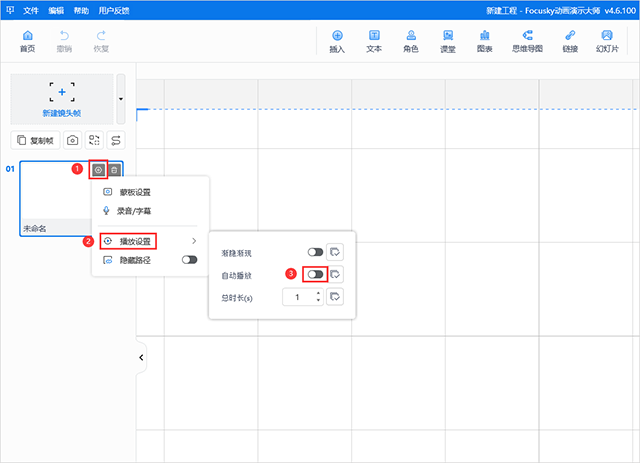 在Focusky(也称为“FS软件”)想要取消帧自动播放,有以下三种方法: