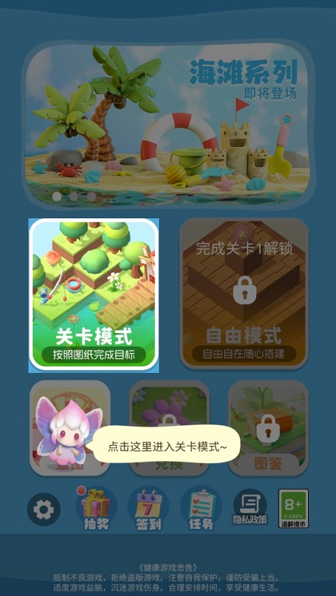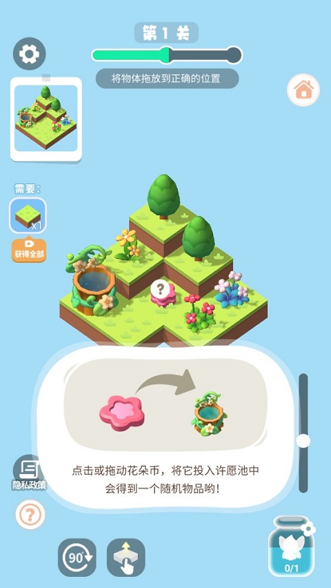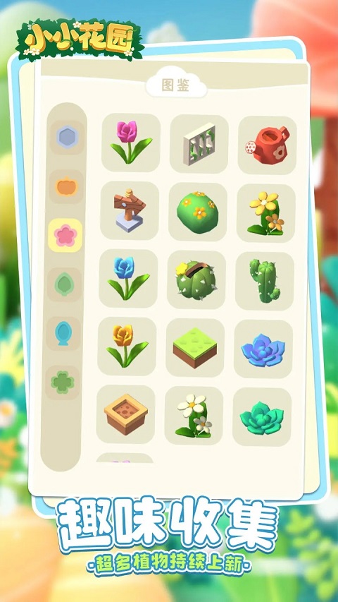 不过要注意,由于关卡设定有指定目标,所以在闯关模式,玩家只需按照指定位置摆放即可。此外,游戏内换有自由模式,这意味着你可以按照自己的想法,自由布局。修建房屋、耕种土地、挖掘池塘、开辟花园。从此,与森林、草地、溪流、花海为伴。海量图鉴,将指导玩家经历的阶段以及过程,并且在小小花园里还有抽奖、签到以及任务等丰厚奖励,别忘了记得领取哦!