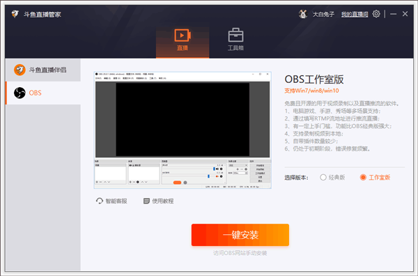 斗鱼直播管家是由官方针对斗鱼直播伴侣和OBS软件研发的一款整合平台。它内置了斗鱼直播伴侣盒OBS经典版和工作室版,可以支持电脑游戏、手游、秀场等多场景,可以帮助新手用户很轻松的掌握OBS直播,或辅助平台主播边播边录,具有可持续化、多场景切换、个性主题强等特点,在直播中使用更多的功能,从此不需要第三方的直播插件!而且用户可以通过斗鱼直播管家,可以完美实现OBS的一键开播,从此告别来回复制推流码的麻烦,高效又轻松,欢迎需要的朋友来本站免费下载。