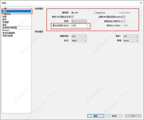 6、在编码栏中,你可以根据自己的宽带开设置最大比特率,具体操作查看下文