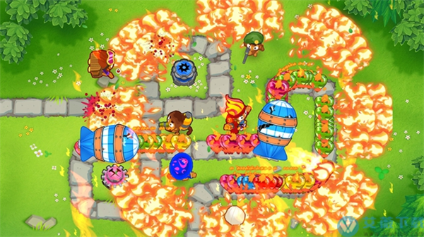塔防游戏是我们很早就能够接触到的一种游戏类型,经过这么长时间的发展塔防游戏的玩法逐渐的丰富,也依然还有这很多的喜爱这一类游戏的粉丝们。今天小编给大家带来了气球塔防6中文版最新版,这是一款非常好玩的大型3D策略塔防游戏,由Ninja Kiwi制作发行,不仅有着丰富的玩法和内容,还采用的是3D的游戏画面,这在塔防游戏中是非常少见的,玩家在游戏中能够享受到非常好的视觉体验。该游戏以气球大军的大规模入侵为背景,借由生存环境的缩小,森林猴子就此展开了绝地反击,为保家园,不同类型的猴子也参与其中,玩家需在气球通过的路途中布置不同类型的猴子来相互配合,成功完成对敌的进攻防御。另外,气球塔防6游戏总共有着30多张地图等待着玩家前去体验,丰富的地图让游戏耐玩性以及可玩性有效的增加,并且这些地图中因为是3D建模,所以会出现很多遮挡视线的物品,玩家需要注意被遮挡的地方,针对这些地方进行布放防御。