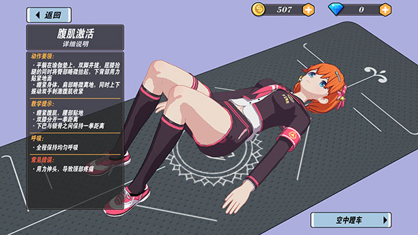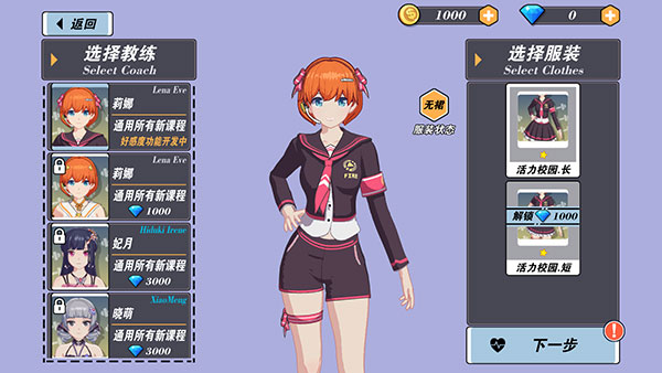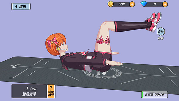 玩家可以通过完成健身来进行养成,解锁不同的教练、服装和课程。