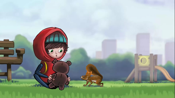 5、搭建后即可点击小男孩,小男孩就会自动前进;