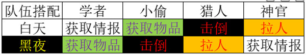 那么在本次角色能力,一人白昼与黑夜分别与另一人互斥的情况下,我们应该怎样选择搭配队伍呢?