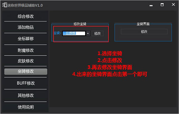 6、选择需要修改的坐骑,再去修改坐骑界面,点击第一个即可完成;