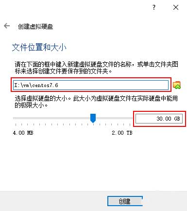 6、设置虚拟硬盘的位置和大小,点击创建即可。