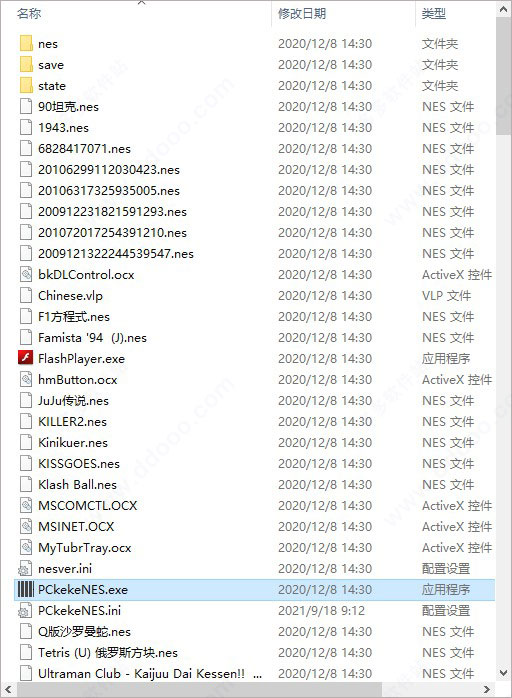 1、在本站下载解压,得到电脑nes模拟器中文版软件包,且内附170个经典游戏;