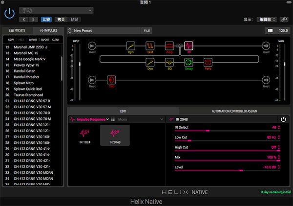 Helix Native插件提供了无限的创意调色板来激发灵感,创建了60多个放大器,30多个扬声器音箱以及100多种效果器。该界面提供了快速直观的音调编辑工作流程,因此您可以立即访问整个信号链并快速调整设置。Helix Native还支持第三方脉冲响应(IR),从而提供更大的音调灵活性。