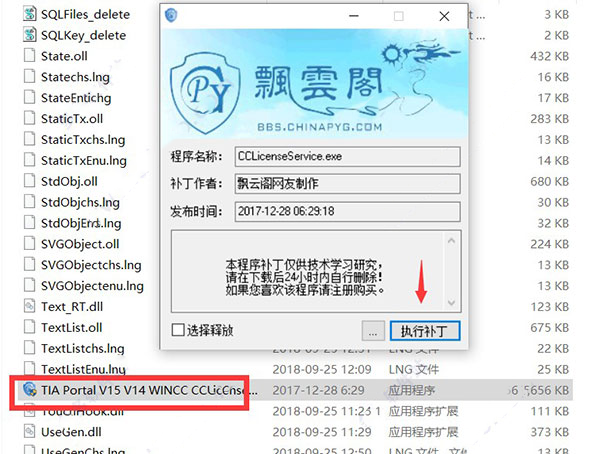 将补丁“”TIA Portal V15 V14 WINCC CCLicenseService 免狗和谐补丁.exe“复制到CClicenseService.exe所在目录