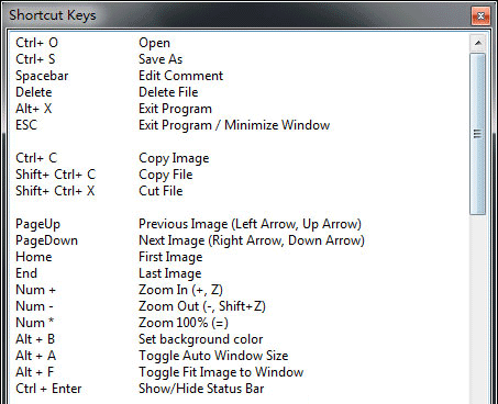 5、Nexusimage同样支持丰富的快捷键提供操作,熟练使用这些快捷键,能够帮助用户的体验上更方便,快捷,用户可以自行在软件的帮助文件下学习即可:
