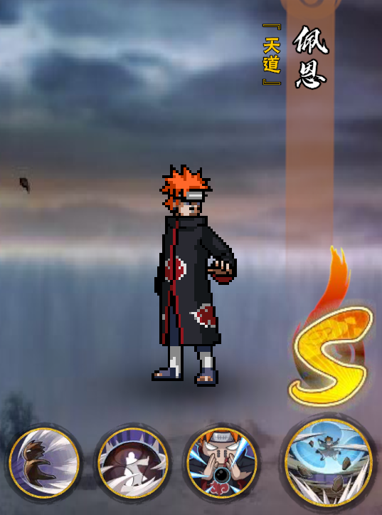 佩恩的平A一共4A,1A平推,2A跃起旋转攻击,3A蓄力向前突刺捅向目标,随后使用神罗天征弹飞对面。空中技瞬间释放神罗天征,在2A时可街接使用。