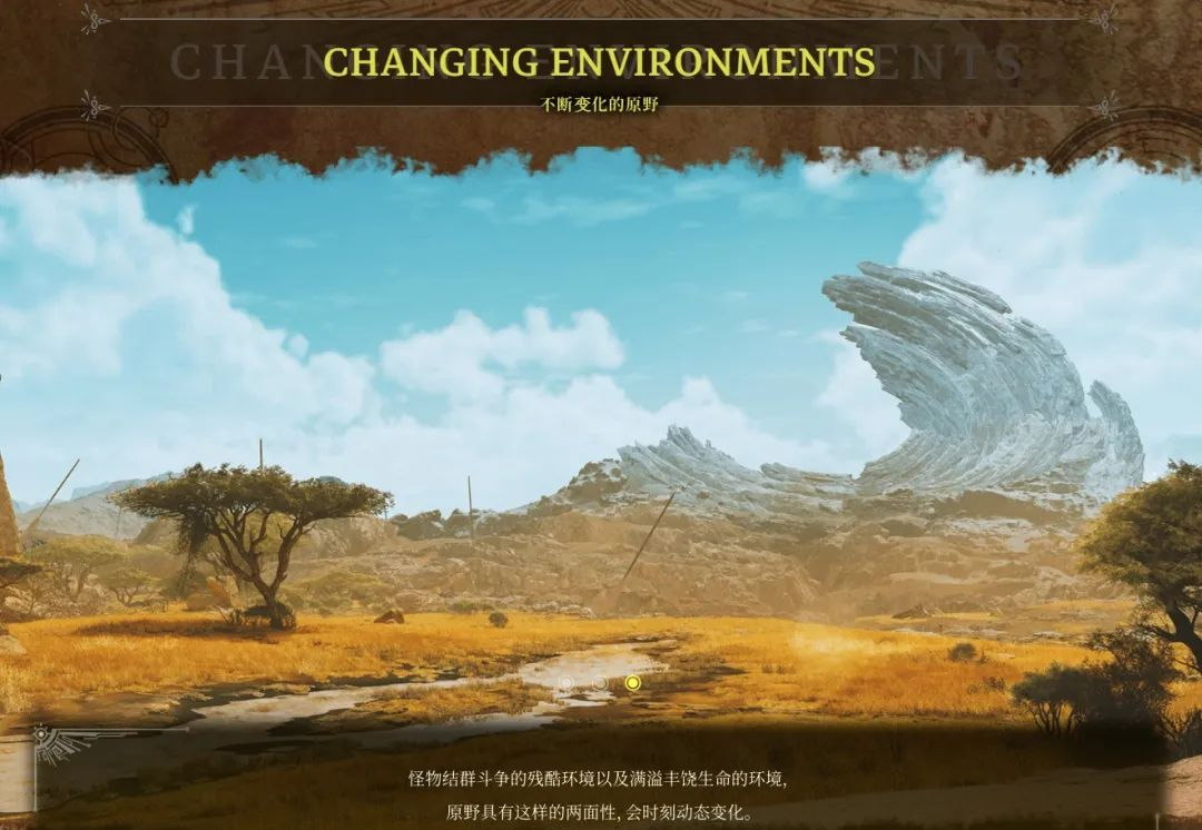 原野具有两面性,经历饥肠辘辘的肉食性怪物结群斗争的残酷“荒芜期”与“异常气象”之后,会迎来满溢富饶生机的“丰饶期”,哪怕身处同一个地点,也会在不同的时候展现截然不同的面貌。