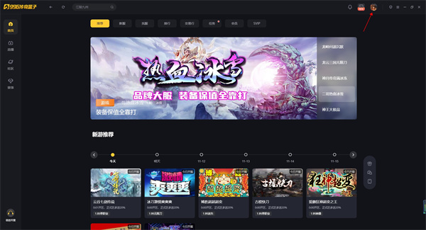 1、进入996传奇盒子,点击右上方的账号头像;