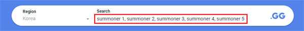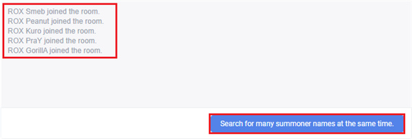 您还可以按召唤师姓名#1、召唤师姓名#2、召唤师姓名#3、召唤师姓名#4、召唤师姓名#5 进行搜索,以逗号 (,) 分隔。