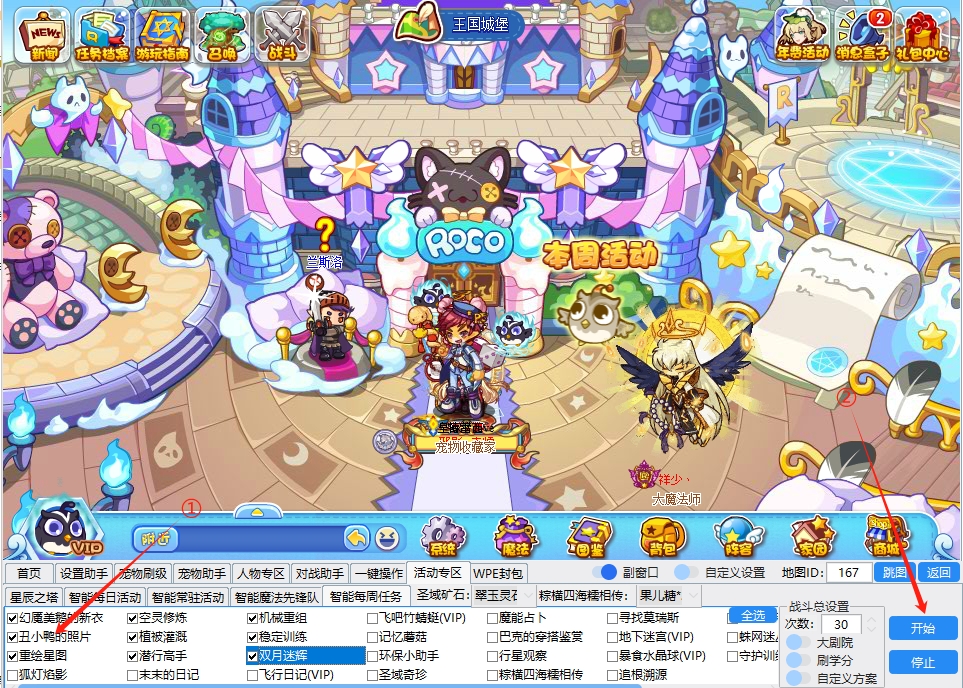 1、在【智能每周任务】中勾选需要完成的任务,然后点击【开始】,童心智能辅助会自动为玩家逐一完成任务!