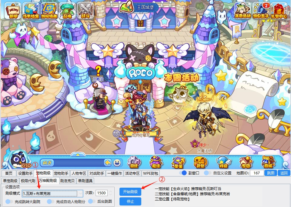 1、在【宠物刷级】中点击【万神殿刷级】,携带好宠物后点击【开始刷机】,童心辅助便可挂机刷级!