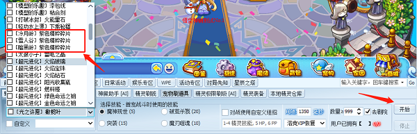 3、勾选左侧要刷的紫色精粹碎片并点击右侧的开始按钮。