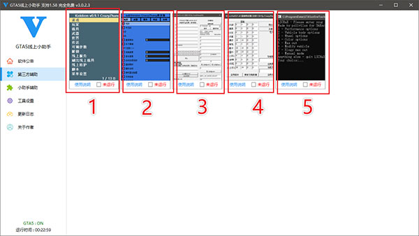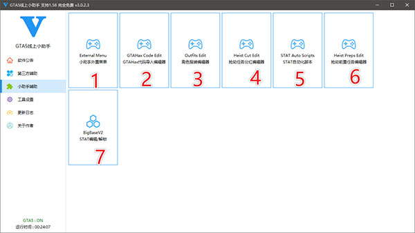 GTA5线上小助手是一款完全免费的GTA5线上模式辅助工具,它能够为各位玩家们提供大量功能,比如刷钱,更改服装,传送等多种功能,还可以对GTA5游戏进行汉化。GTA5线上小助手还集成了多个辅助——BincoHax、subVersion、GTAHax等等,玩家可根据自己的需求进行使用。感兴趣或有需要的用户欢迎下载使用。