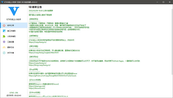 这里主要是小助手的最新公告,每次打开小助手就会自动下载最新公告并显示,方便大家了解最新的辅助信息,比如哪些功能危险啊等等。如果你禁止了小助手联网,这里不会显示内容,但是不会影响小助手功能的使用