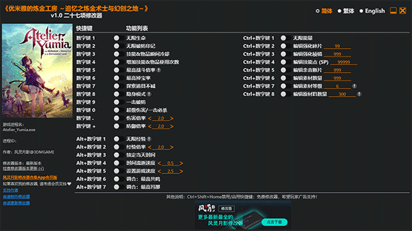 还有一个亮点是它的键位设计很友好,通过数字键和组合键就能快速调用各种修改功能,比如无限生命、隐身模式、超级伤害等,操作起来很方便。总之,有了这个修改器,玩家可以更轻松地探索炼金世界,享受游戏乐趣。