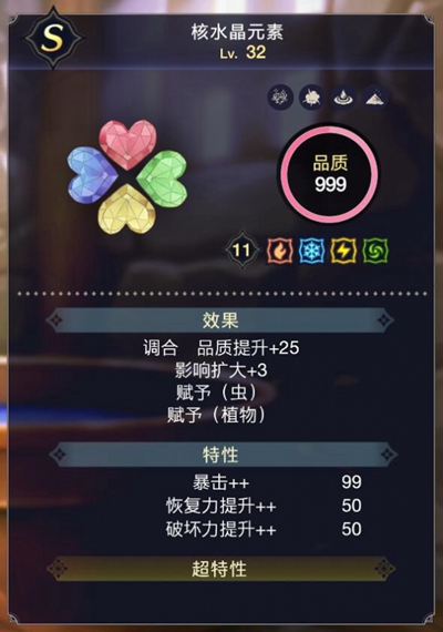 10、属性值9以上的核水晶元素