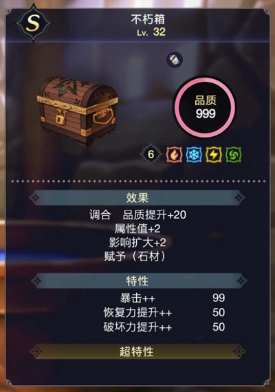 第四步:利用影响扩大+2的全属性不朽箱拉满材料环的效果。