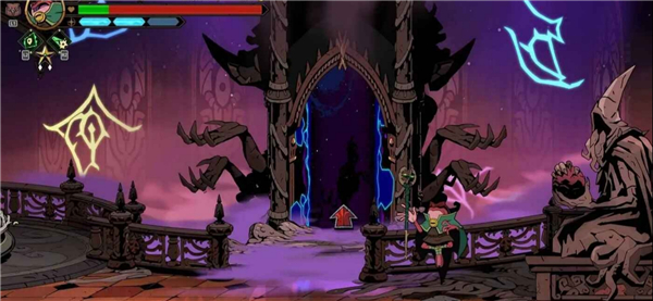 通过重复表情密码(拇指向下接拇指向上)进入宅邸,战斗至下一个带心根休息处的安全区。 由此向右发现带阶梯的雕像,从雕像后方密道进入游戏最难区域之一。