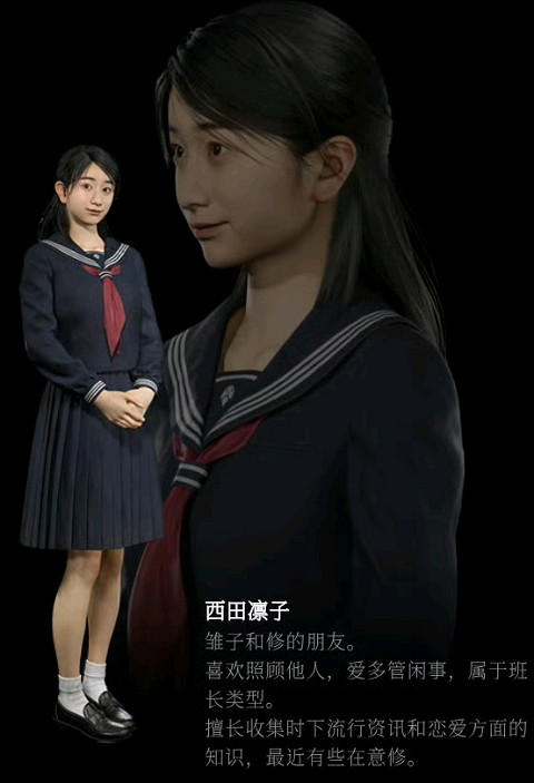 3、西田凛子:雏子和修的朋友,习惯照顾他人,爱多管闲事,最近在暗恋修。