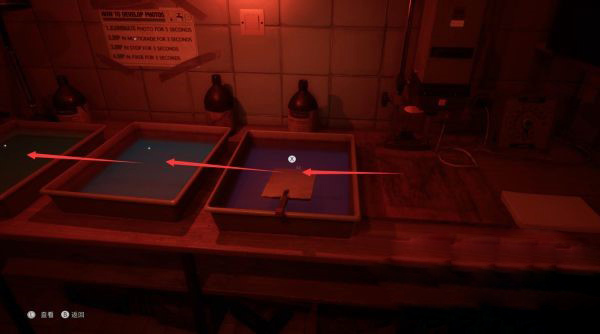 经过厨房来到暗室洗照片,墙上贴着洗照片的步骤: