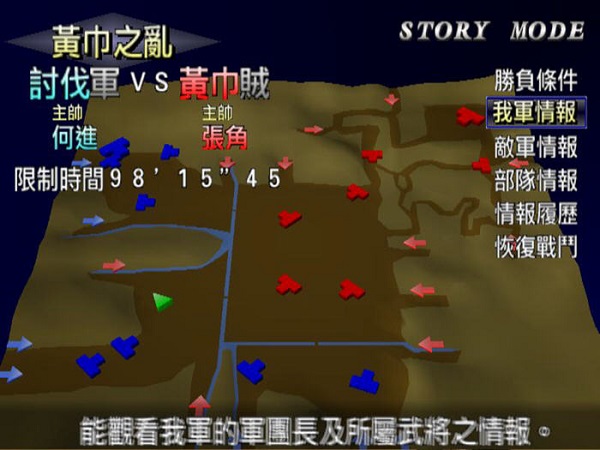 2。刘备军队全军移动开始信息后,诸葛亮地图右侧城内进军曹操军队和其交战状态入手。