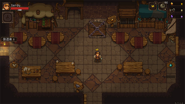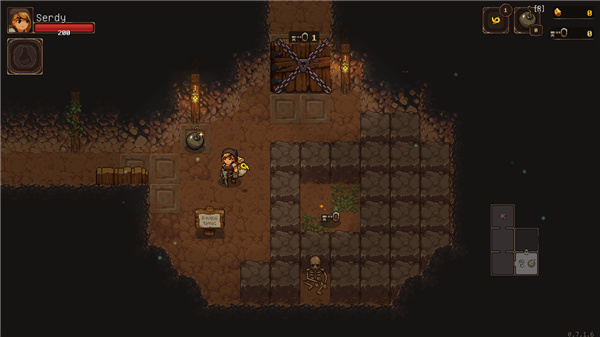 这层会带玩家熟悉一些基本操作:跳跃、近/远程攻击、使用炸弹、挖金矿(爱上偷偷怪)