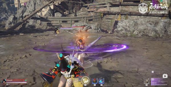 后续出现左键连按提醒,原理类似自身的F小技能,左键按下甩出紫刃,再次按下瞬移至紫刃出并使出下一跳斩。