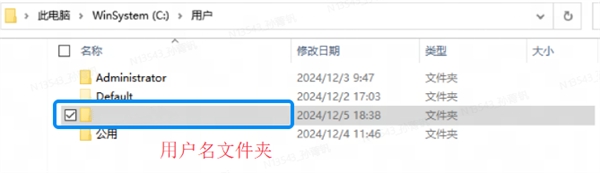 ②第二步,找到您的用户名文件夹,文件夹的名字是您登录电脑时使用的用户名;