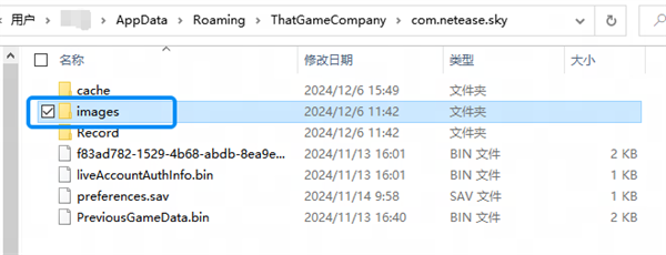 ①使用游戏内相机进行拍照后,照片存储路径为C/Users\user\AppData\Roaming\ThatGameCompany\com.netease.sky\images