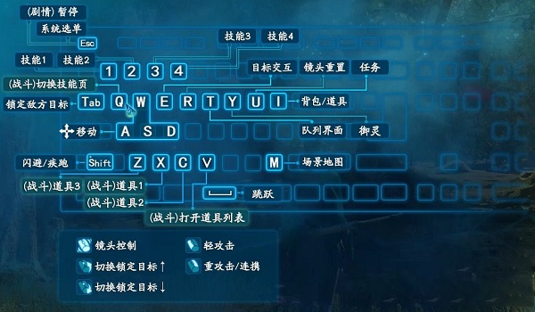 战斗中使用WASD进行移动,鼠标左、右键分别进行轻、重攻击。