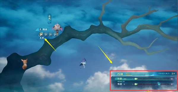 类似与宠物系统,游戏内有3个初始御灵:巧翎、古柏、蕴儿。可以给它们喂食灵果升级,从而给予角色一定的增益。
