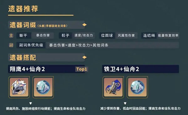翔鹰4+仙舟2:提高风伤,施放终结技行动提前,提高生命和全队攻击力