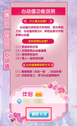 注意:解除伴侣关系会消耗一个伴侣解除卡。