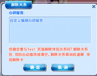 非蜜月期的情况下,点击解除关系后弹出解除关系对话框,可以在这里写下分手告白。确定之后会进入3天的分手期。
