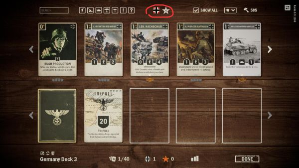 5、作为示范,我选择了德国为主力,苏联为盟友的卡组。