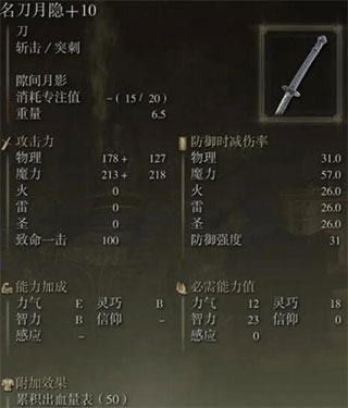 实际上月隐在多周目里的战技伤害并不算很高,不过战技附带的高削韧和极快的出手速度让这把武器在对战人形精英和BOSS上始终都有很好的表现。