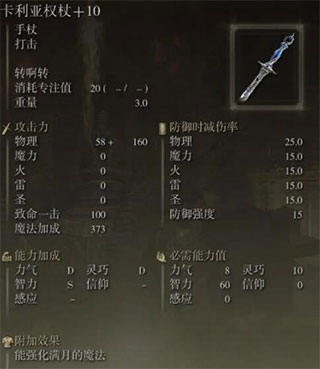 泛用性极高的一把法杖,需要60点智力才能拿起。