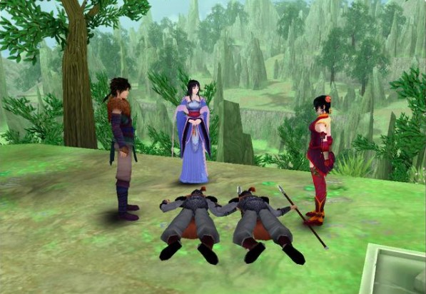 除此之外,游戏中按下左 Ctrl 键,然后移动鼠标就能将镜头任意方位调整,可以看到高耸的建筑物和天上的白云等等,仙四的3D效果只有通过这种方式才能体现出来