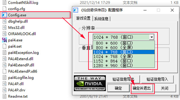 2、游戏中无对窗口大小的设置选项,如需要对游戏的分辨率进行跟换,需要在游戏目录中的“Config.exe”程序中实现,具体操作如下图所示;